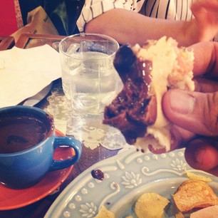 Vigan Longganisa sandwich dipped in Mary Grace Hot Chocolate