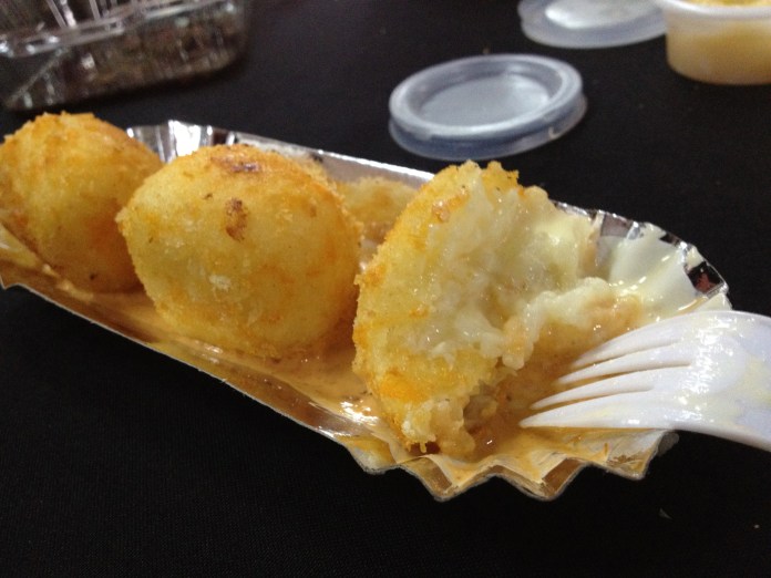 First off I had……Bistrology‘s immensely indulgent Risotto Balls–balls of risotto and cheese deep fried and smothered with aligue (crab fat) sauce.