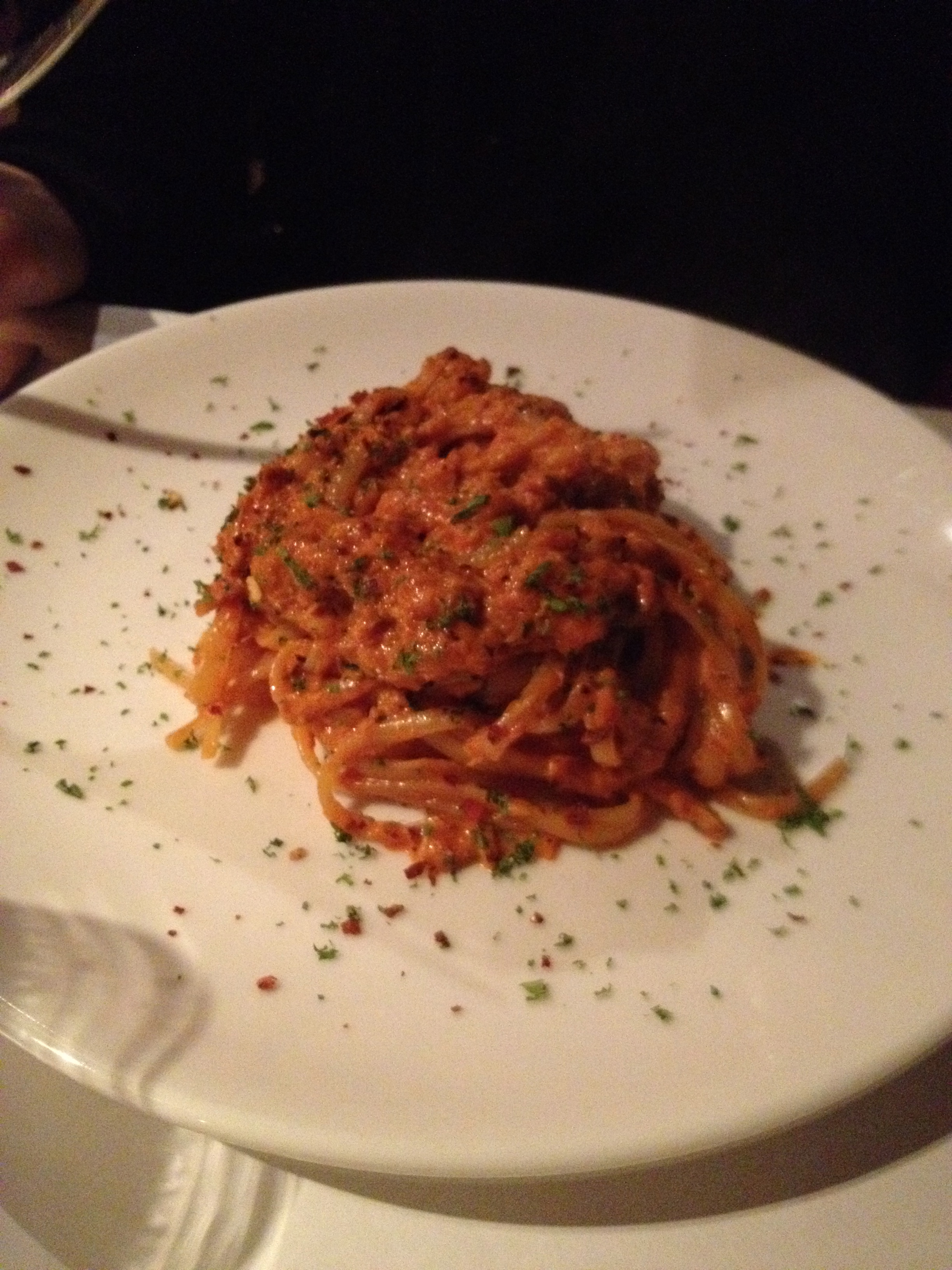 Char had the crab fat pasta, and I had the chilean sea bass.